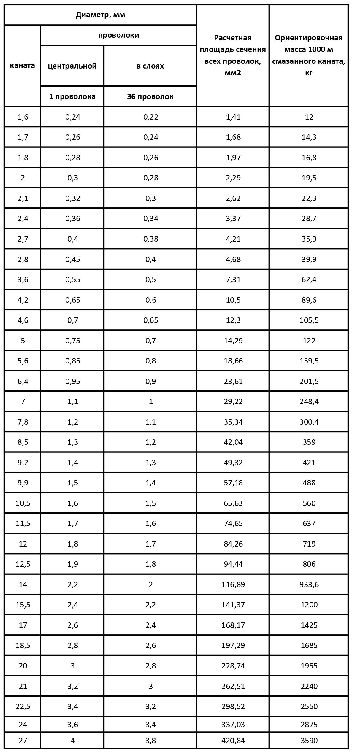 Масса 1000 м смазанного каната719 кг