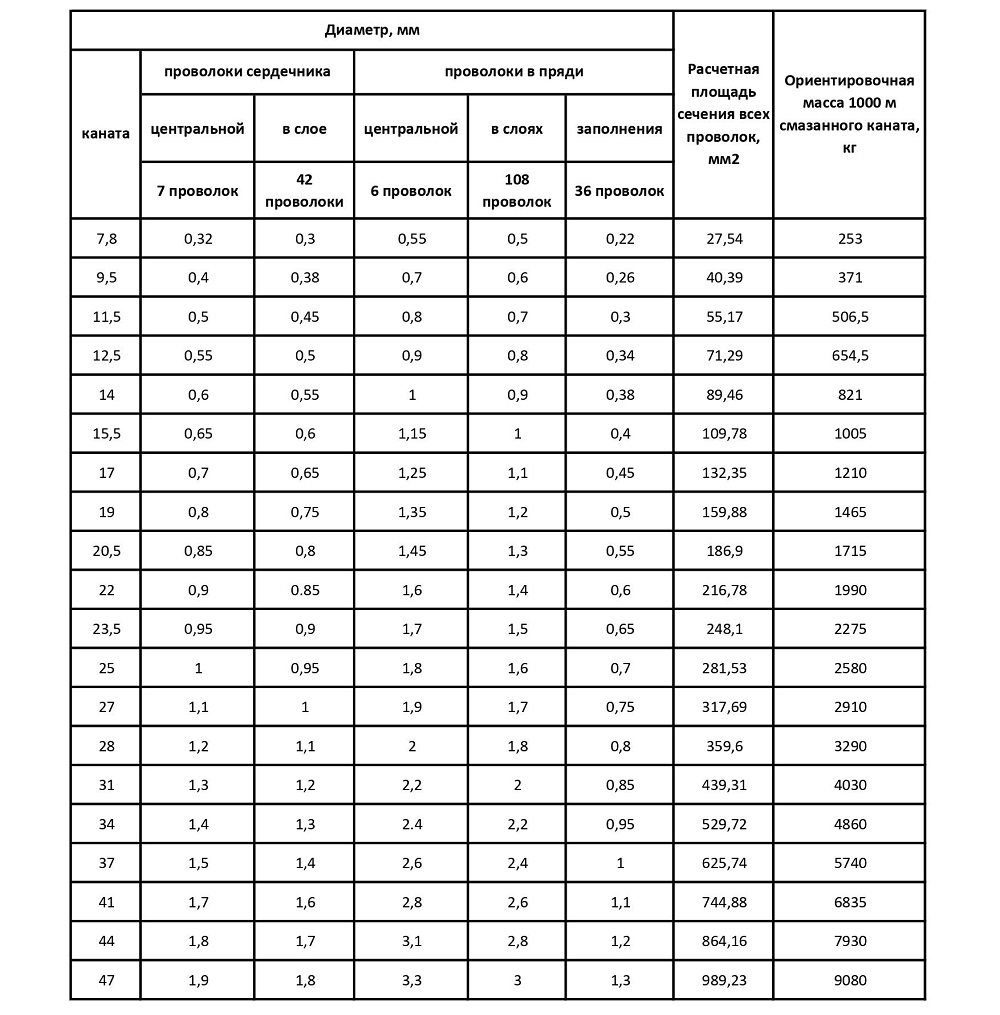 Конструкция6х25 (1+6;6+12) + 7х7 (1+6)