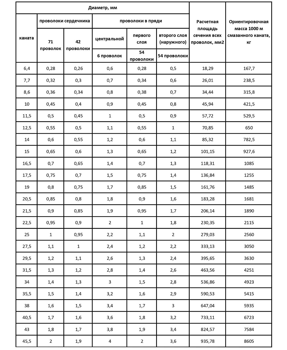 Масса 1 м каната5,935 кг