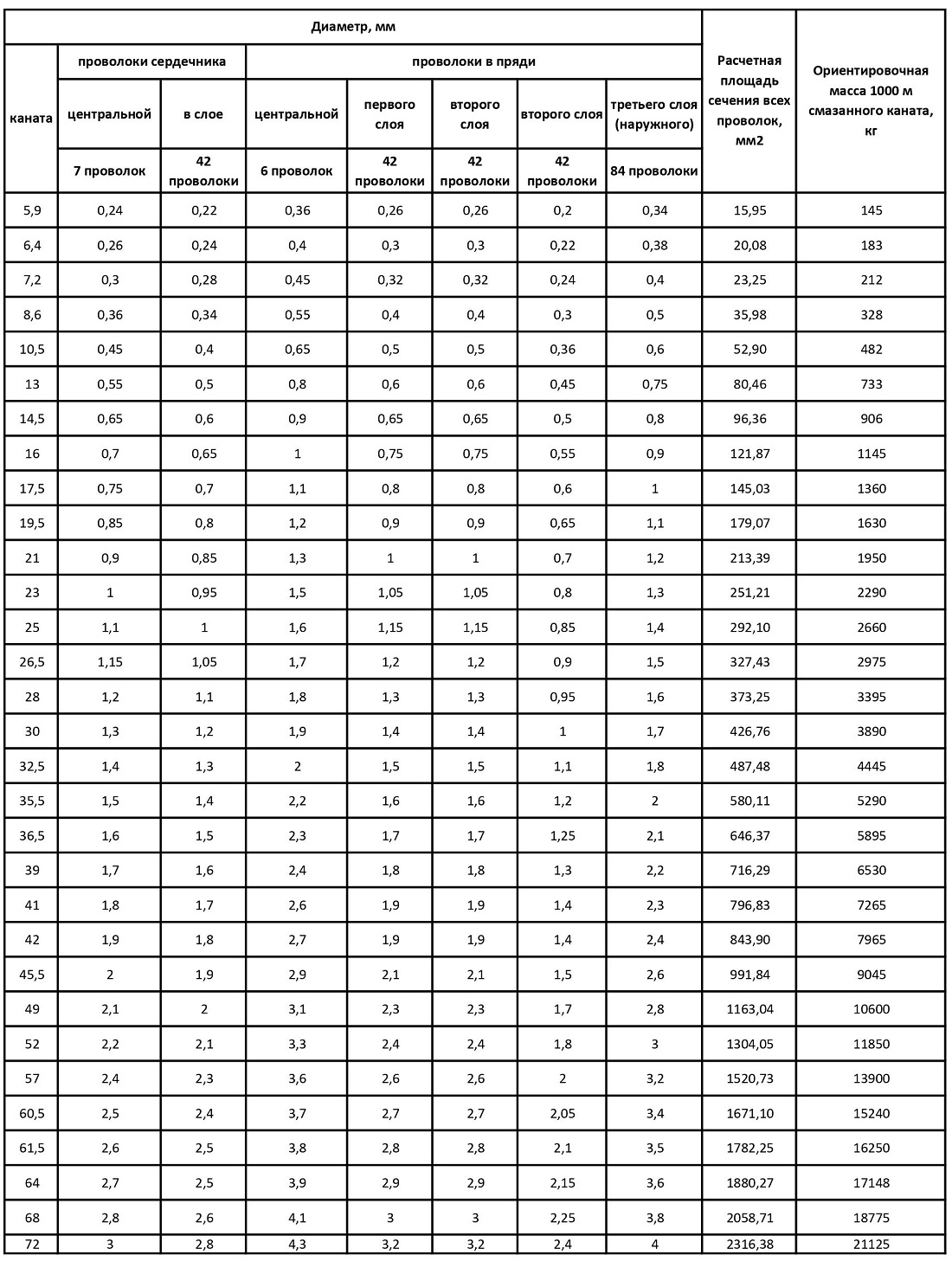 Масса 1000 м смазанного каната16250 кг