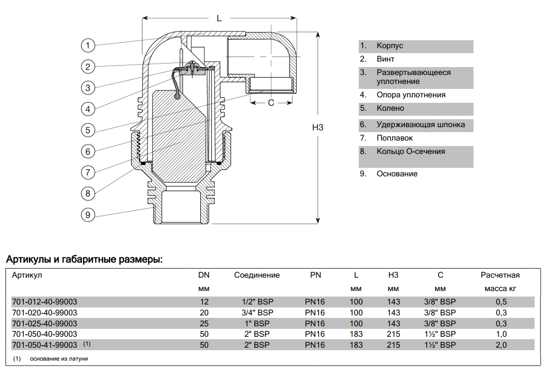 Клапан AVK 701/40 DN 25 PN 16 воздушный комбинированный резьбовой