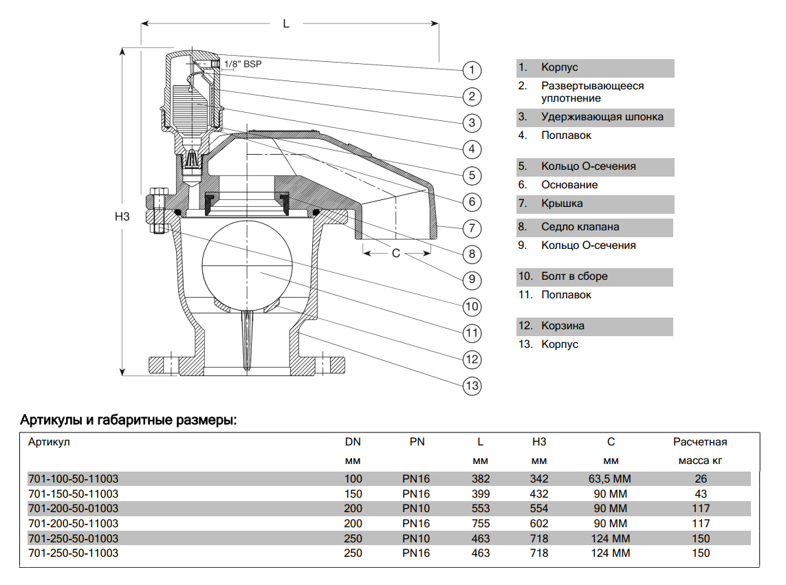 Клапан AVK 701/50 DN 200 PN 16 воздушный комбинированный фланцевый