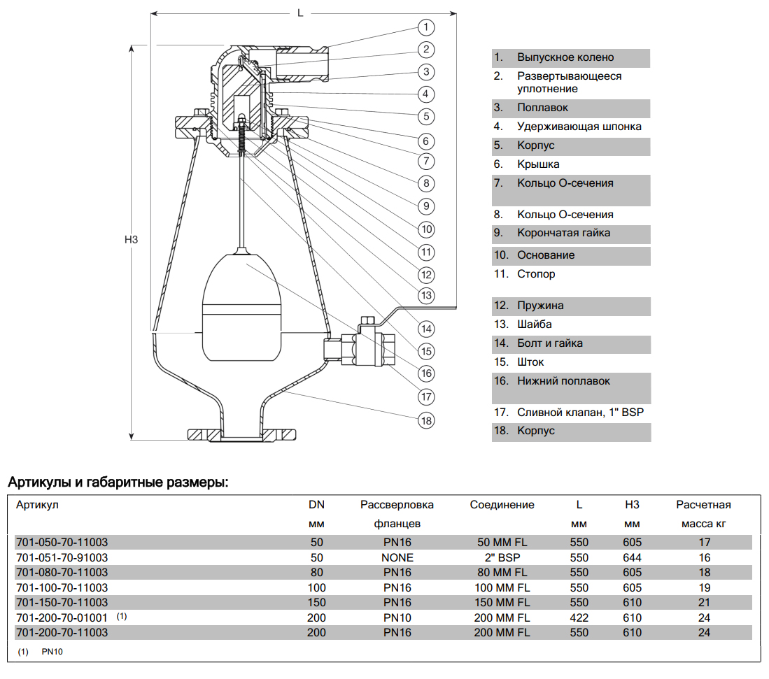 Клапан AVK 701/70 DN 50 PN 16 воздушный комбинированный