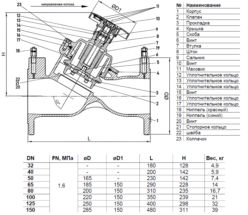Тип клапанаБалансировочный