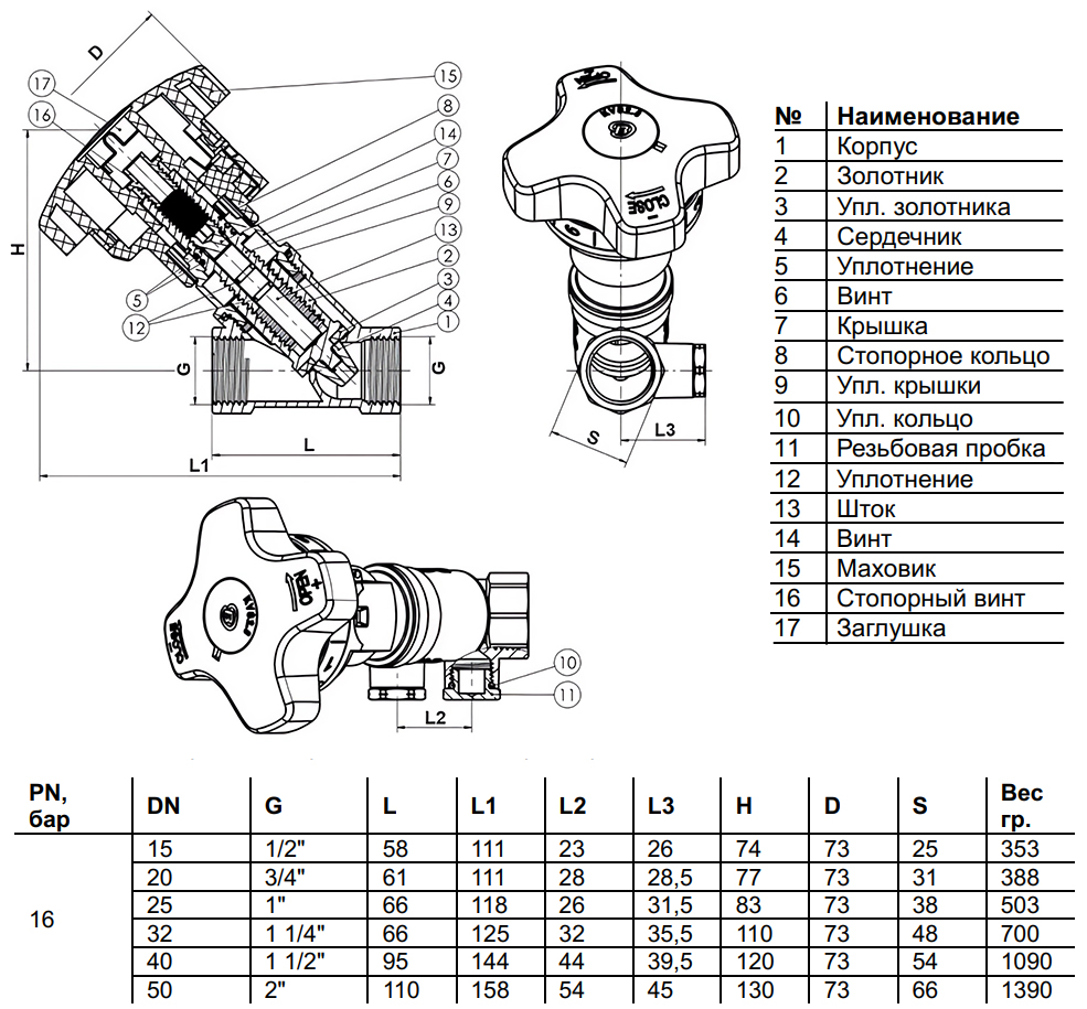 Рабочее давлениеPN 16