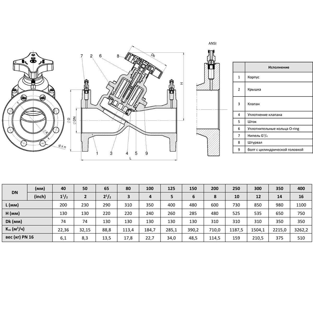 Клапан балансировочный Zetkama 447 Ду300 Ру16 чугунный фланцевый zSTA 447A300C72