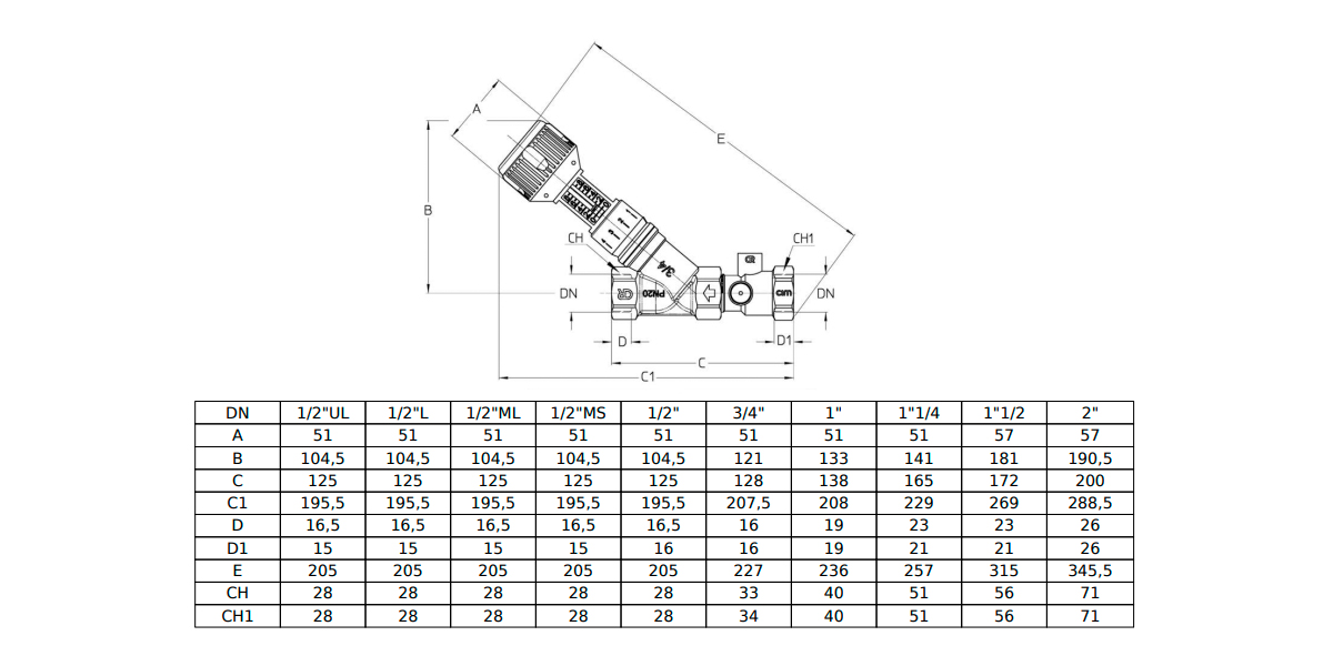 Клапан Cim 736 1/2" L Ру 20 балансировочный Cimberio