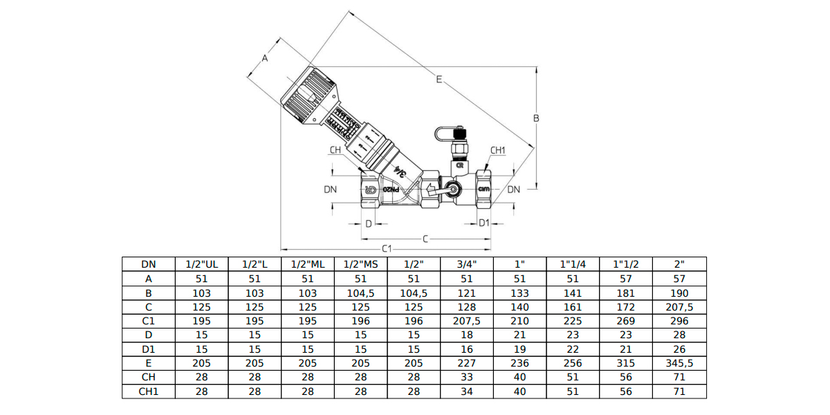 Клапан Cim 737 1/2" Ру 20 балансировочный Cimberio