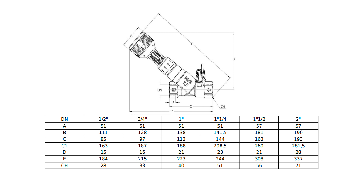 Клапан Cim 747H 3/4" Ру 25 балансировочный Cimberio