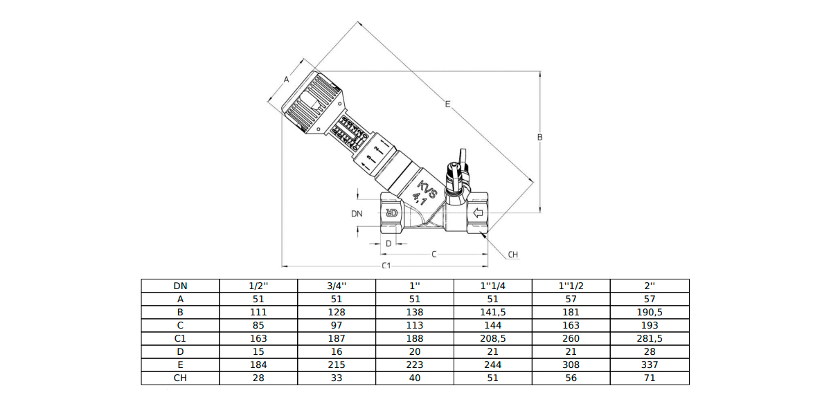 Клапан Cim 747NL 1/2" Ру 25 балансировочный Cimberio