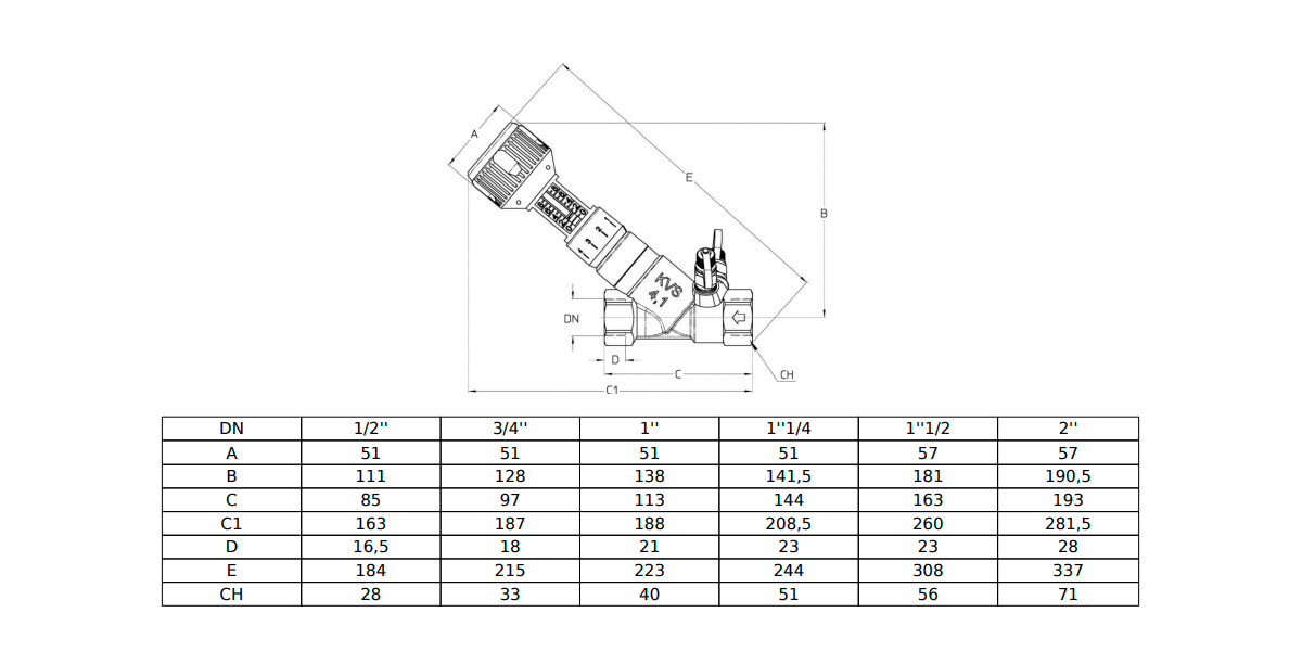 Клапан Cim 747OT 1/2" Ру 25 балансировочный Cimberio