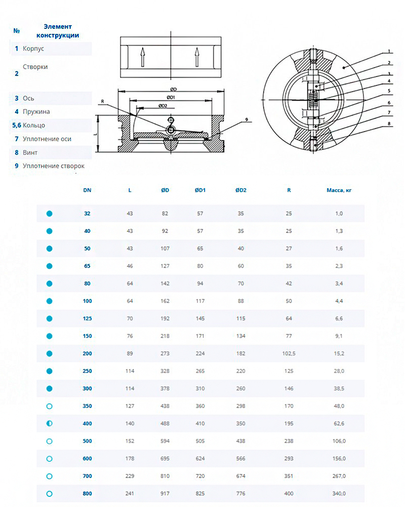 Клапан Dendor 010C DN 150 обратный межфланцевый