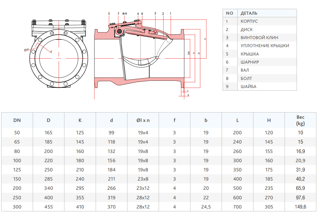 Клапан FAF 2270 DN 80 PN 16 обратный поворотный фланцевый