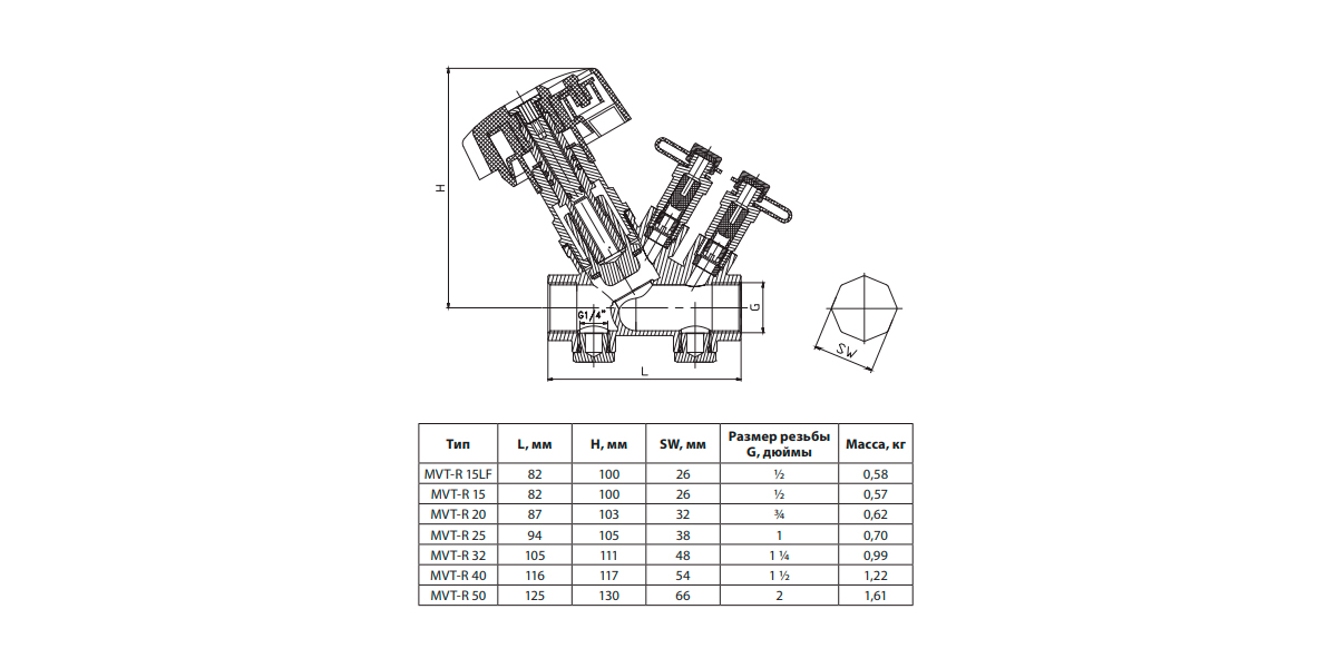 Клапан MVT-R Ду 15 Ру 16 балансировочный Ридан