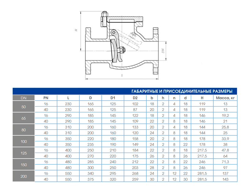 Клапан обратный 19лс53нж Ду 50 Ру 40 поворотный фланцевый