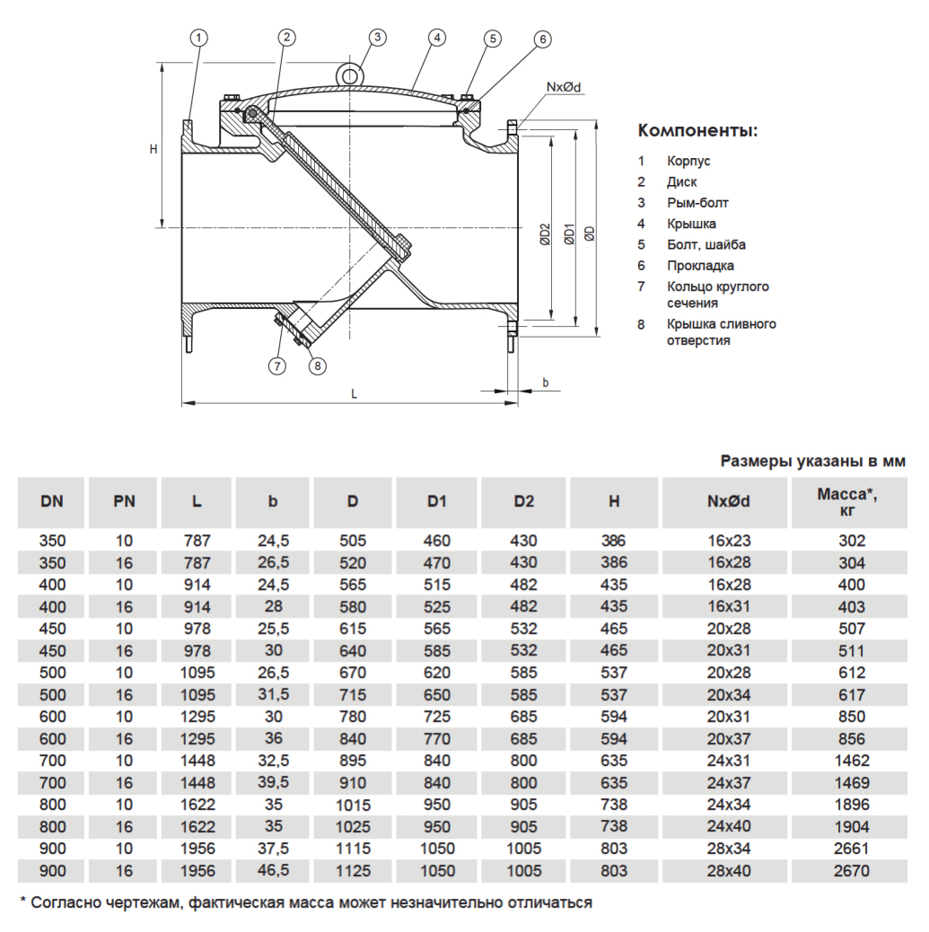 Клапан обратный дисковый VGA MS31.11 DN 600 PN 16