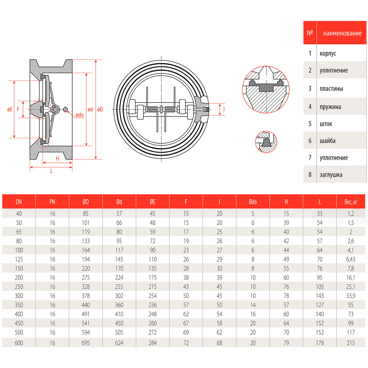 Клапан обратный двухстворчатый РАШВОРК 400 Ду300 Ру16 межфланцевый чугунный