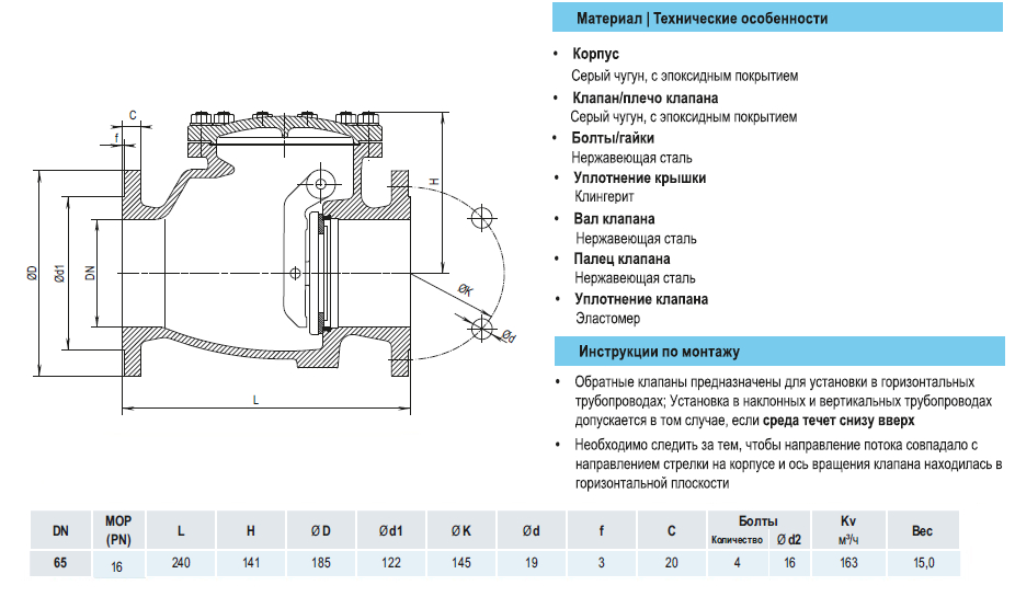 Клапан обратный HAWLE 9830 DN 65 PN 16