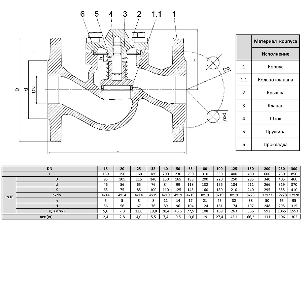 Клапан обратный подъемный ZETKAMA 287A Ду150 Ру16 чугунный фланцевый zCHE 287A150C31