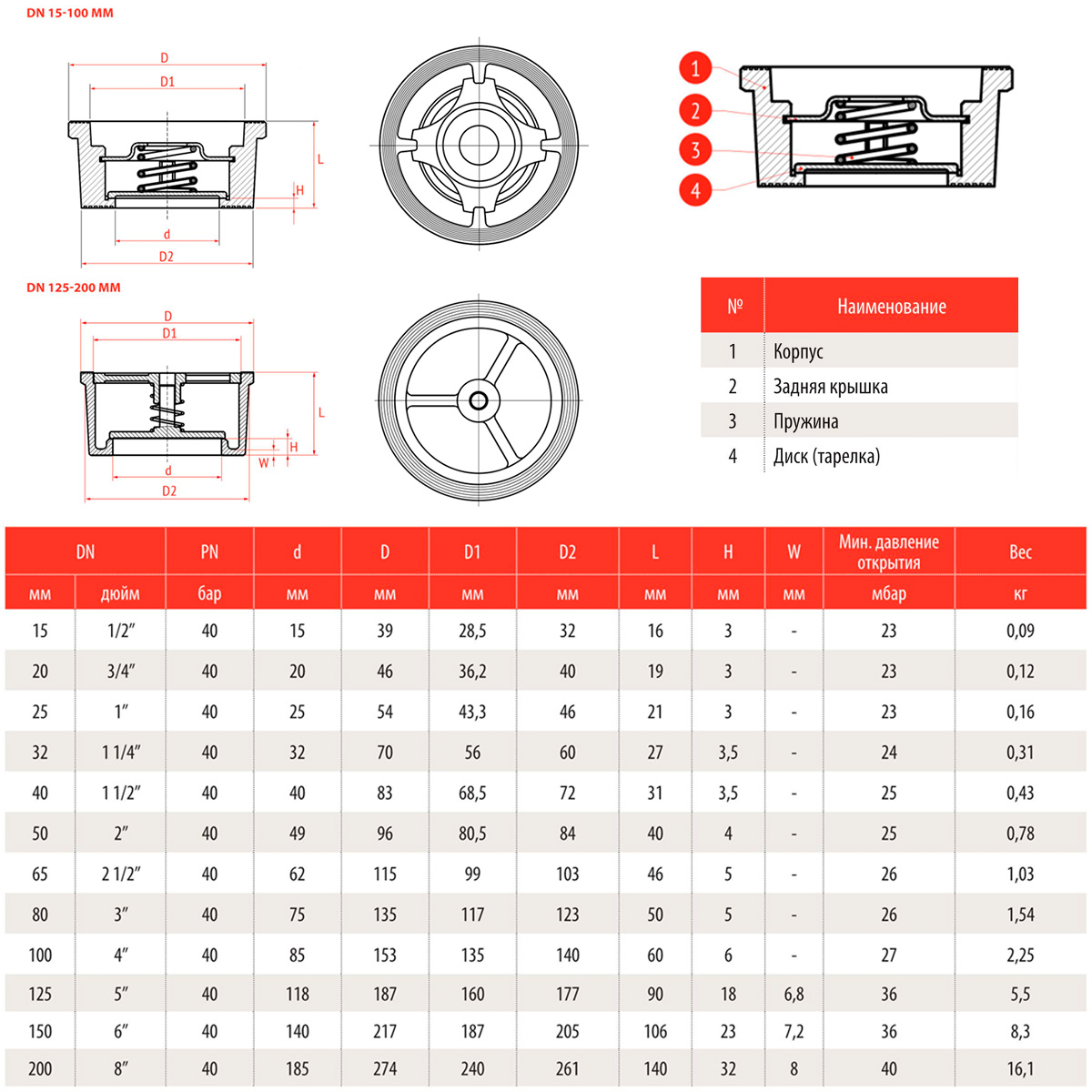 Клапан обратный пружинный РАШВОРК 404 Ду150 Ру40 нержавеющий межфланцевый