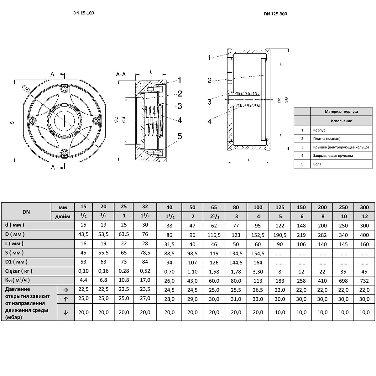 Клапан обратный пружинный ZETKAMA 275I Ду40 Ру40 нержавеющий межфланцевый zCHE 275I040E51