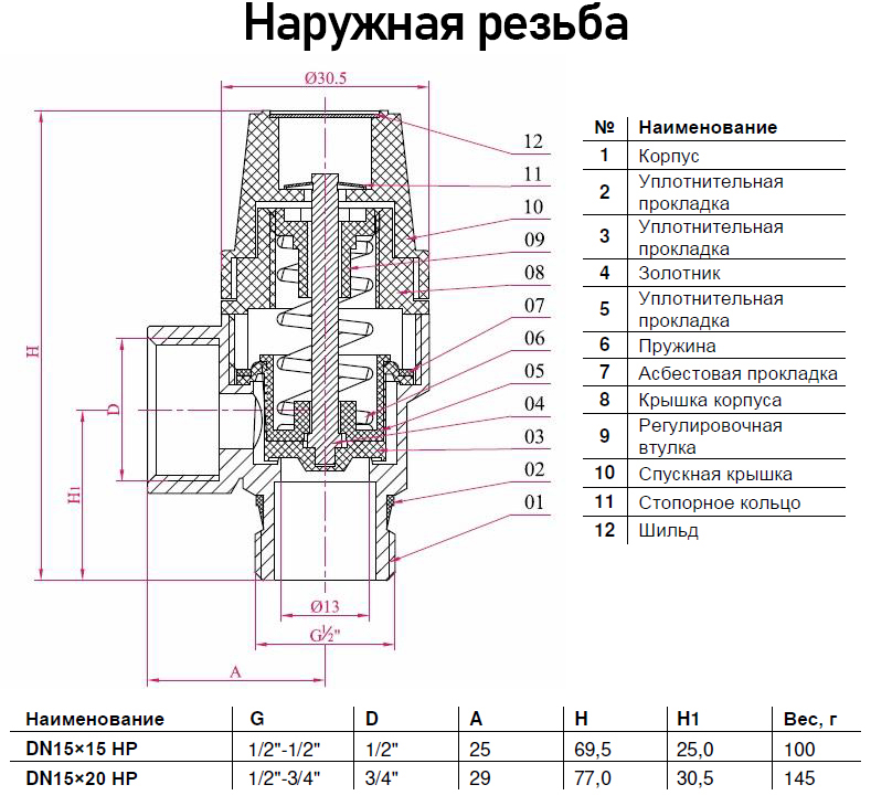 | Тип клапана | |