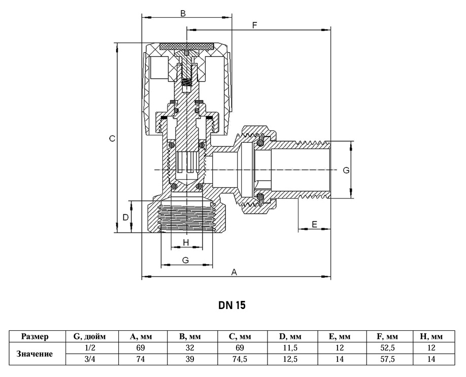 Клапан радиаторный VALFEX VF.07.RN ВР-НР 1/2" DN 15 PN 10 ручной угловой
