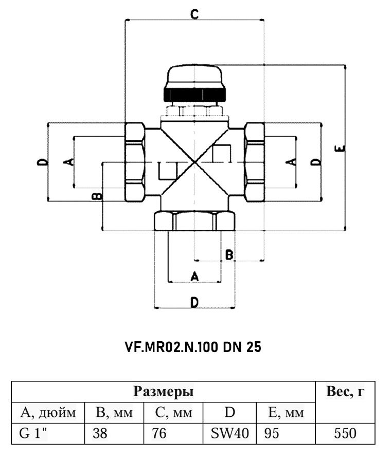 Клапан регулирующий VALFEX VF.MR02.N.100 ВР 1" DN 25 PN 10 смесительный трёхходовой