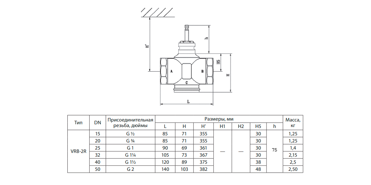 Клапан регулирующий VRB-2R Ду 25 Ру 25 Ридан двухходовой