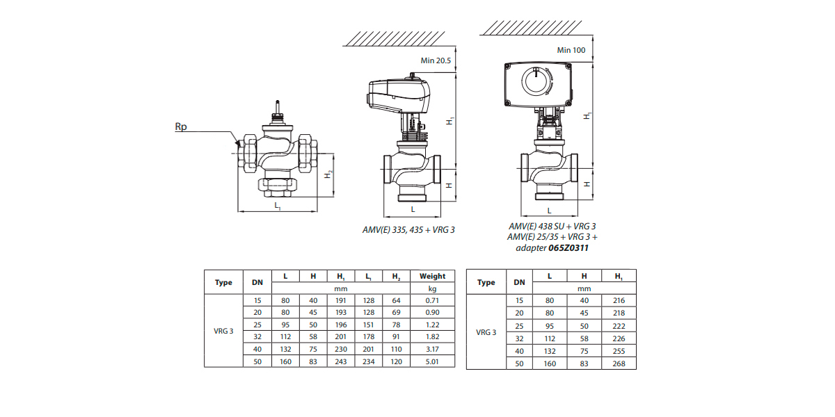 Клапан регулирующий VRG 3 Ду 25 Ру 16 Danfoss трехходовой