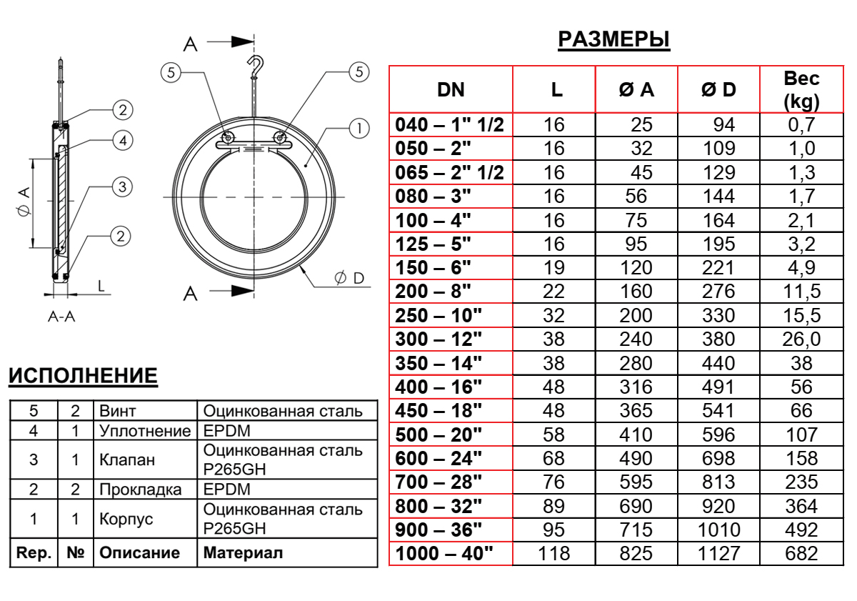 Клапан Tecofi CB5440 DN 400 обратный одностворчатый межфланцевый PN 16