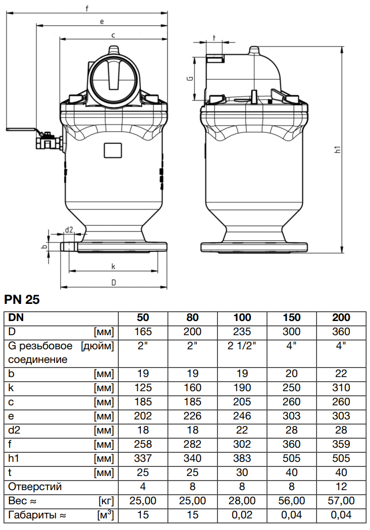 Клапан VAG DUOJET DN 150 PN 25 воздушный однокамерный