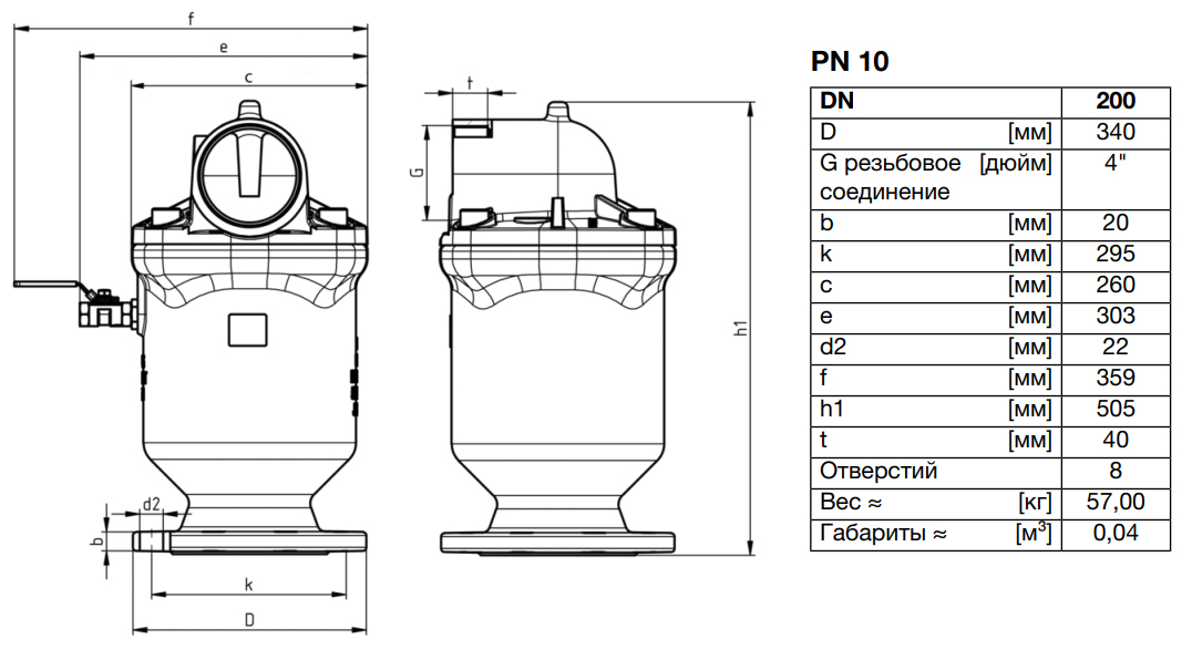 Клапан VAG DUOJET DN 200 PN 10 воздушный однокамерный