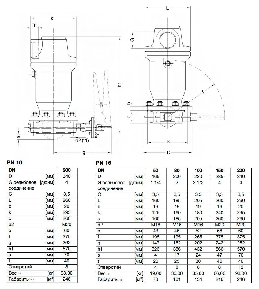 Клапан VAG DUOJET-S DN 200 PN 16 воздушный однокамерный с затвором