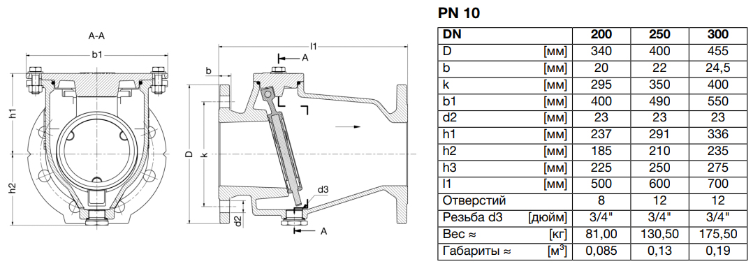 Клапан VAG RETO-STOP DN 300 PN 10 обратный