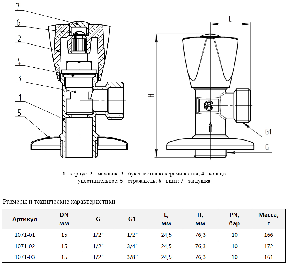 Клапан (вентиль) угловой для бытовых приборов латунный Aquasfera 1071 DN 15 PN 10 резьба - 1/2"х1/2", покрытие - хром, с отражателем, резьбовой НР-НР, маховик хромированный, 1071-01
