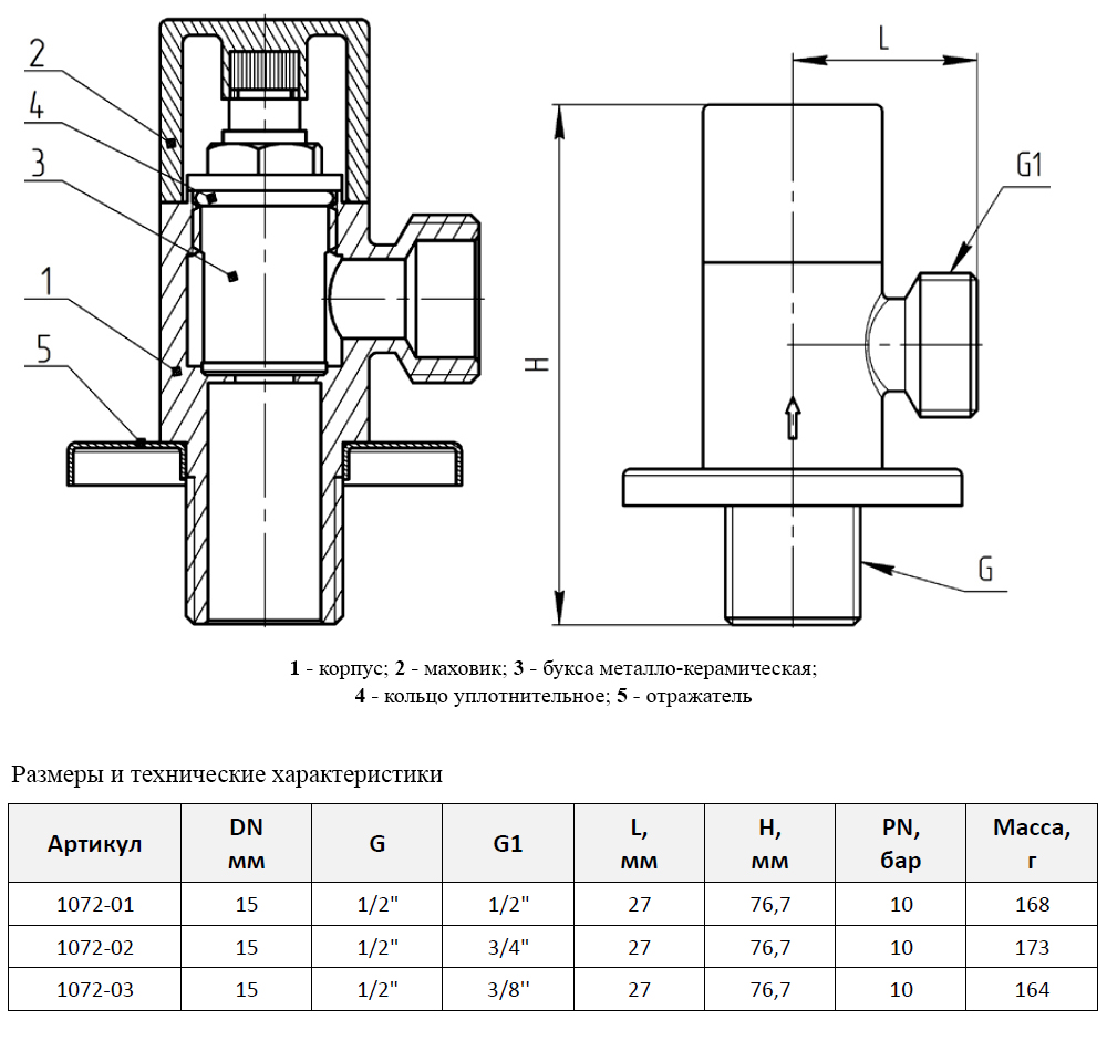 Клапан (вентиль) угловой для бытовых приборов латунный Aquasfera 1072 DN 15 PN 10 резьба - 1/2"х3/8", покрытие - хром, с отражателем, резьбовой НР-НР, маховик хромированный, 1072-03
