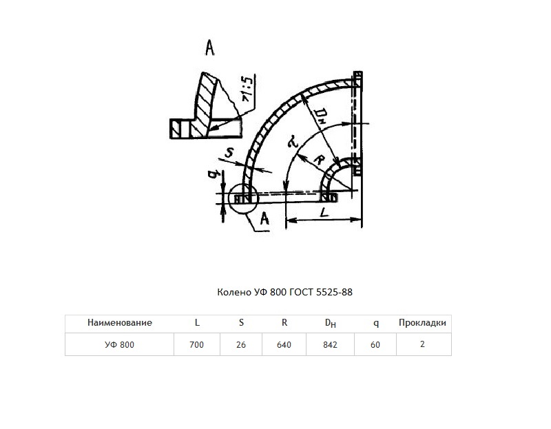 Колено УФ Ду 800 ВЧШГ ГОСТ 5525-88 чугунное фланцевое
