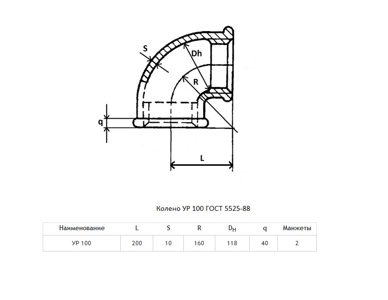 Колено УР Ду 100 ВЧШГ ГОСТ 5525-88 чугунное раструбное