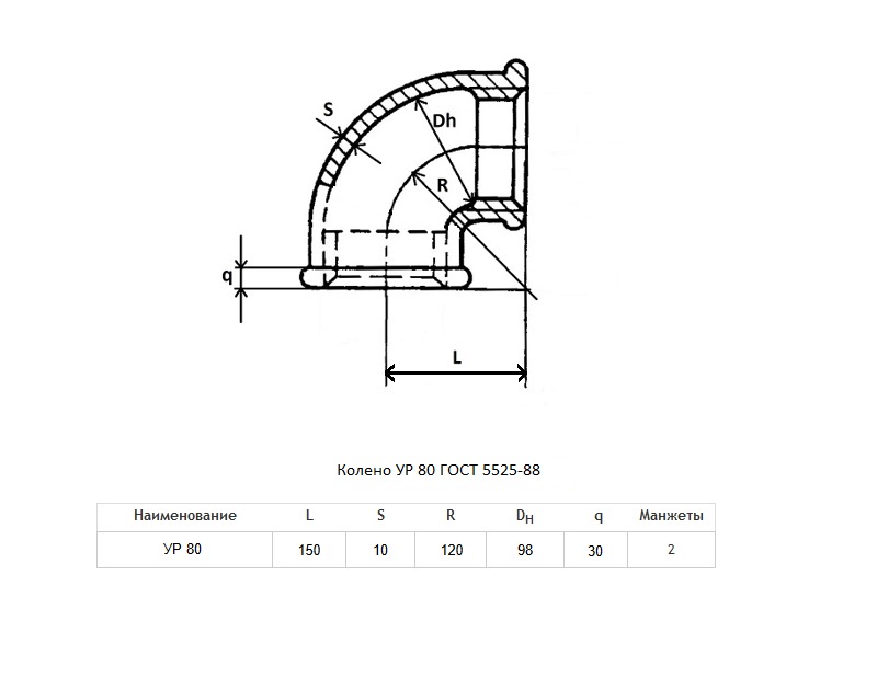 Колено УР Ду 80 ВЧШГ ГОСТ 5525-88 чугунное раструбное