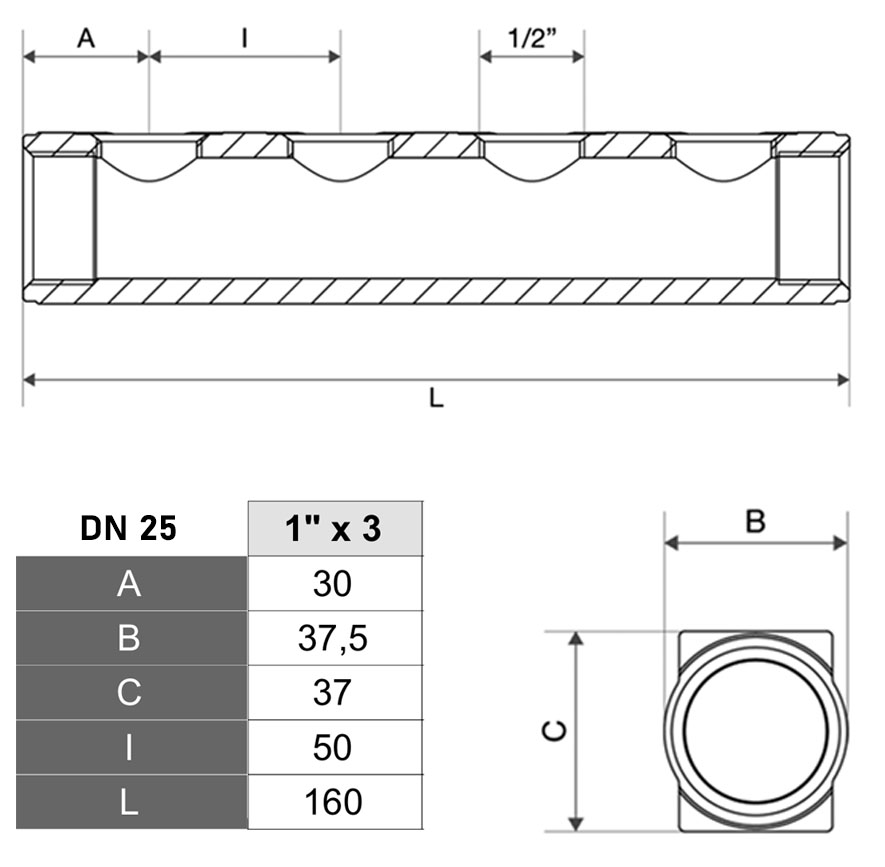 Коллектор распределительный ITAP 850/50 3 выхода DN 25 PN 10 без регулировки
