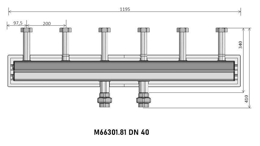 Коллектор распределительный Meibes M66301.81 3-х контурный ВР-НР 1 1/2" DN 40 PN 6 в теплоизоляции