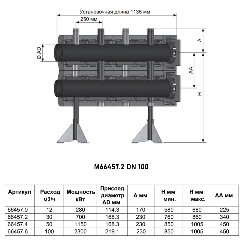 Коллектор распределительный Meibes Victaulic V 150 M66457.2 2-х контурный DN 150 PN 10 в теплоизоляции