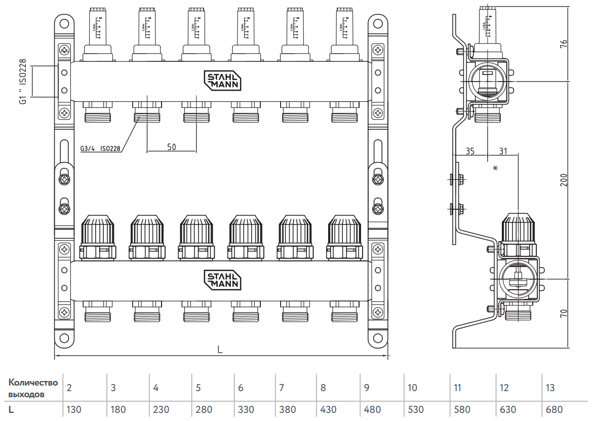 Коллекторная группа из нержавеющей стали Stahlmann SML0001/03404SS 1"x3/4" 4 выхода под евроконус с расходомерами