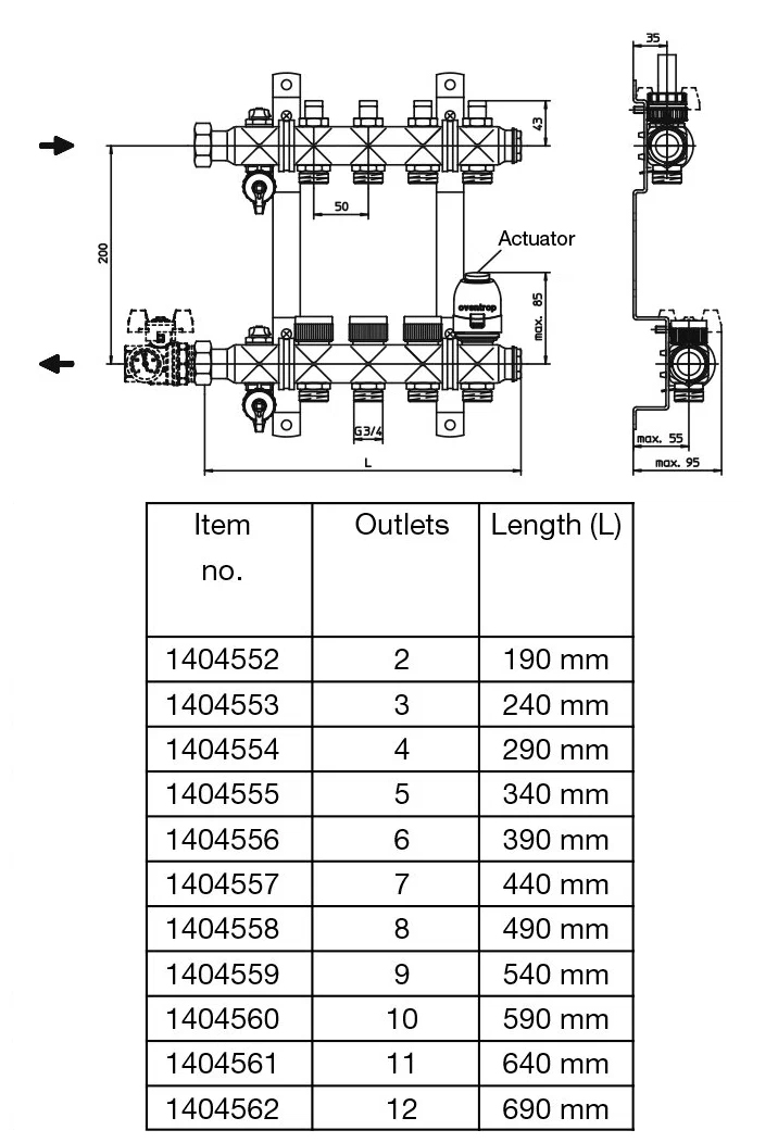 Коллекторная группа Oventrop Multidis SF 10 с вентильными вставками