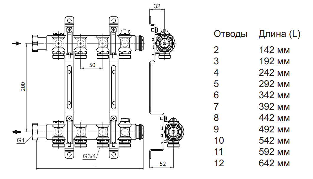 Межцентровое расстояние50 мм
