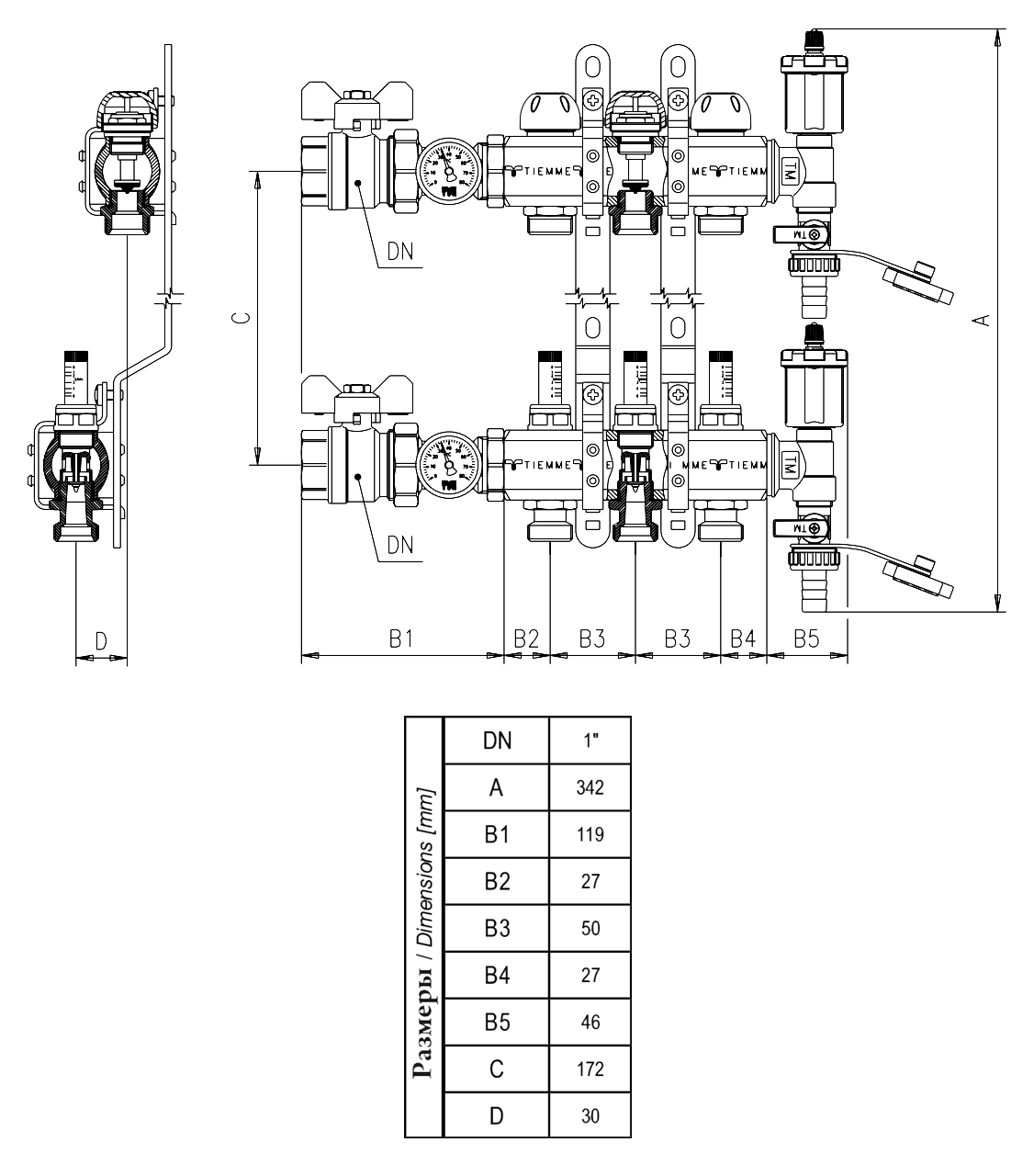 Коллекторная группа TIEMME 9 выходов в сборе с расходомерами