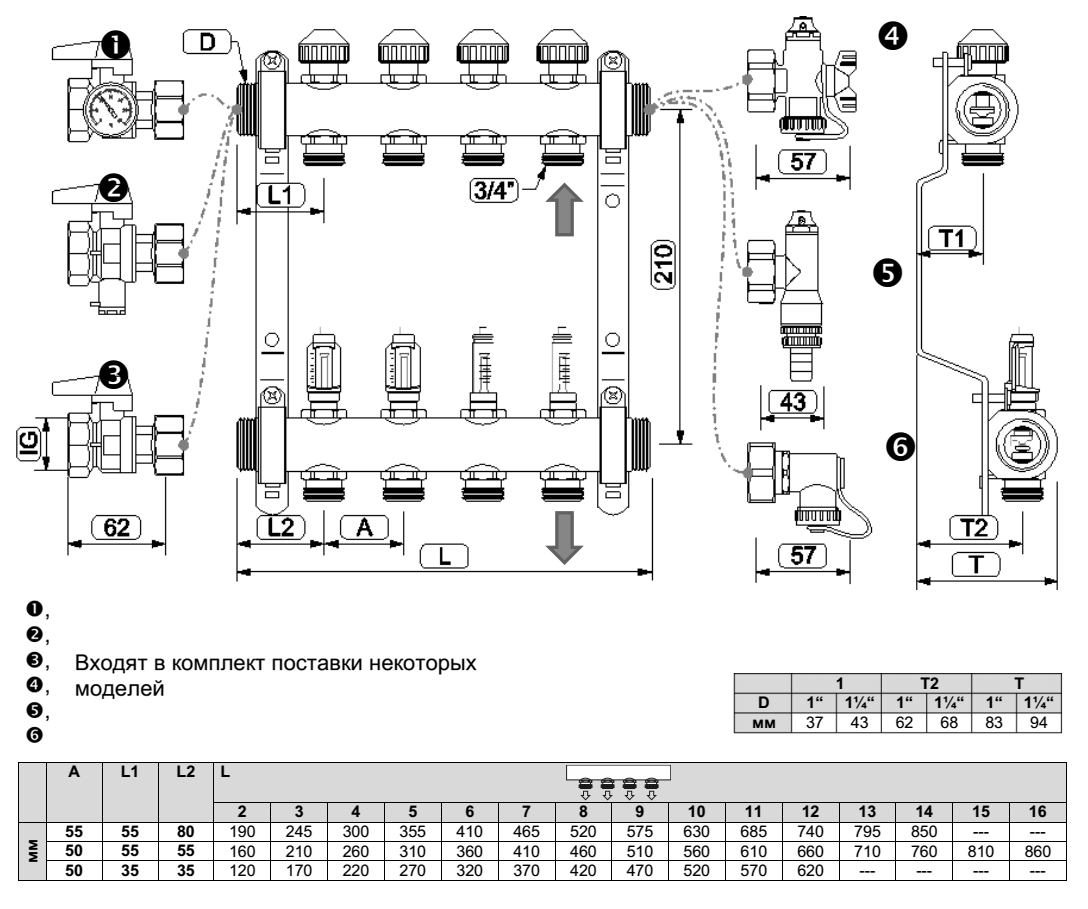 НазначениеДля распределения и регулирования расхода теплоносителя в отдельных контурах систем напольного отопления и охлаждения