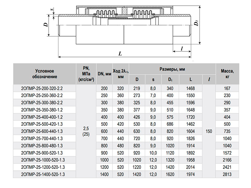 Компенсатор 2ОПМР-25-350-380-1.2 Ду 350 Ру 25 двухсильфонный осевой