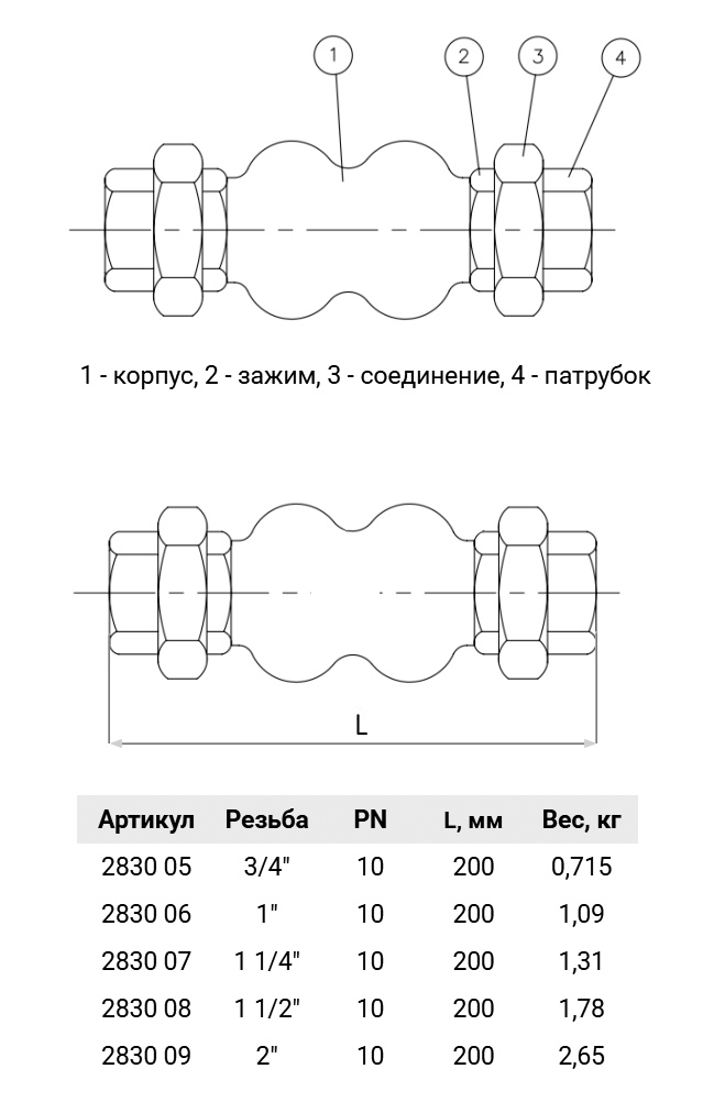 Компенсатор муфтовый Genebre 2830 DN 25 PN 10 резиновый